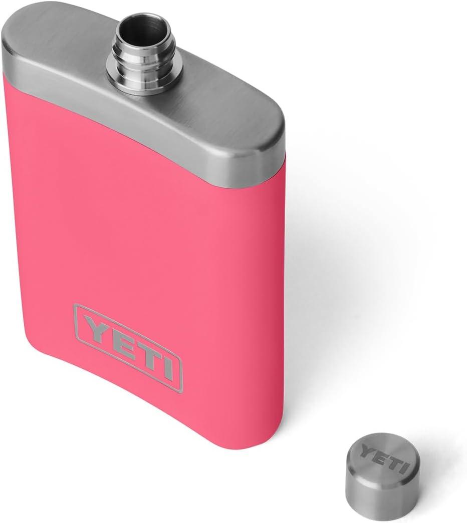 YETI 7 oz Flask with Color Matching Set of Shot Glasses, Tropical Pink