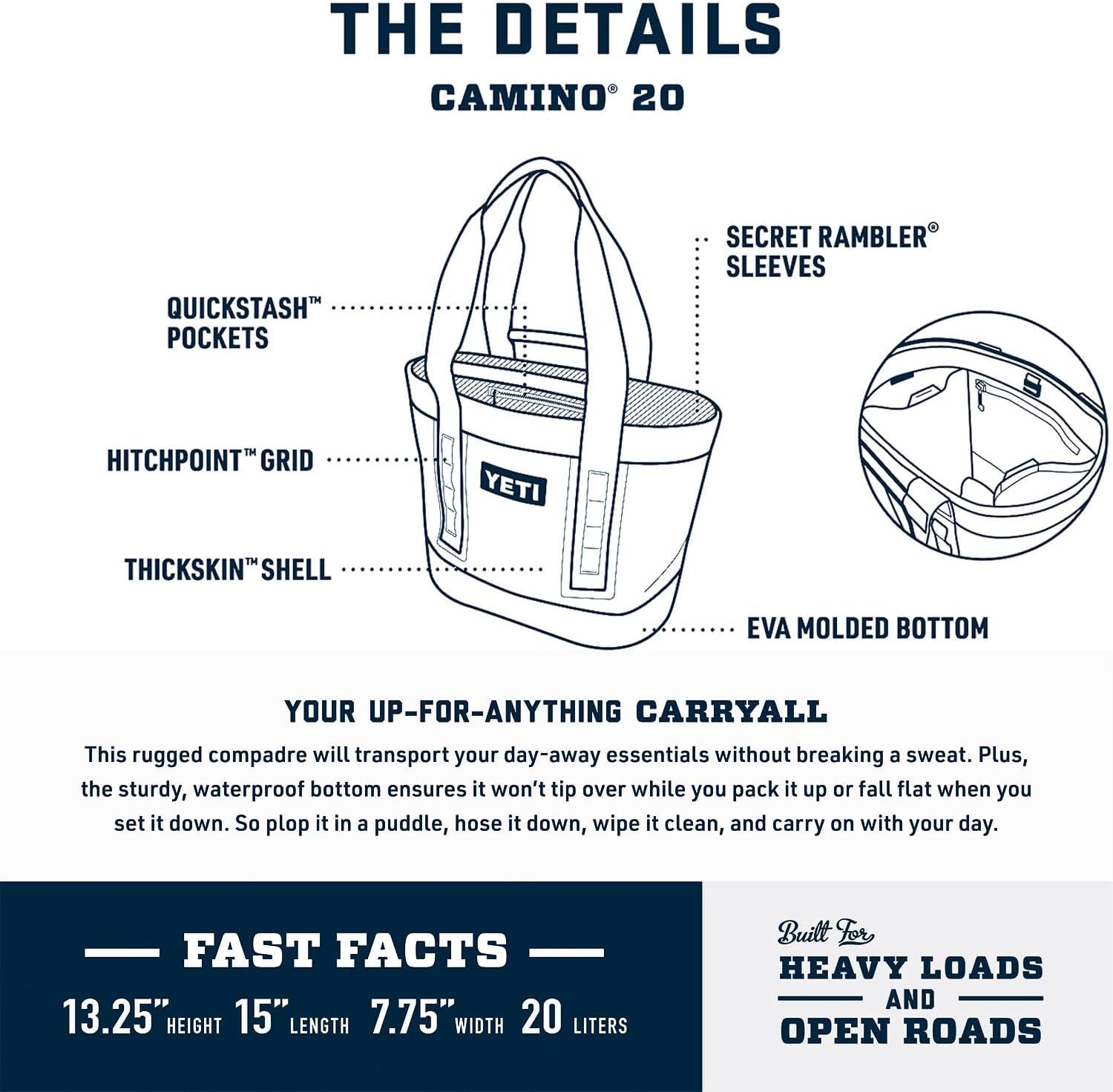MULTIPLE WAYS TO CARRY: The Camino 20 Carryall is a heavy-haulin’, up-for-anything tote. Throw it over your shoulder or pick it up by the CrossBar Handles. Whichever way you choose this bag pulls its weight, so you can carry on with your day.