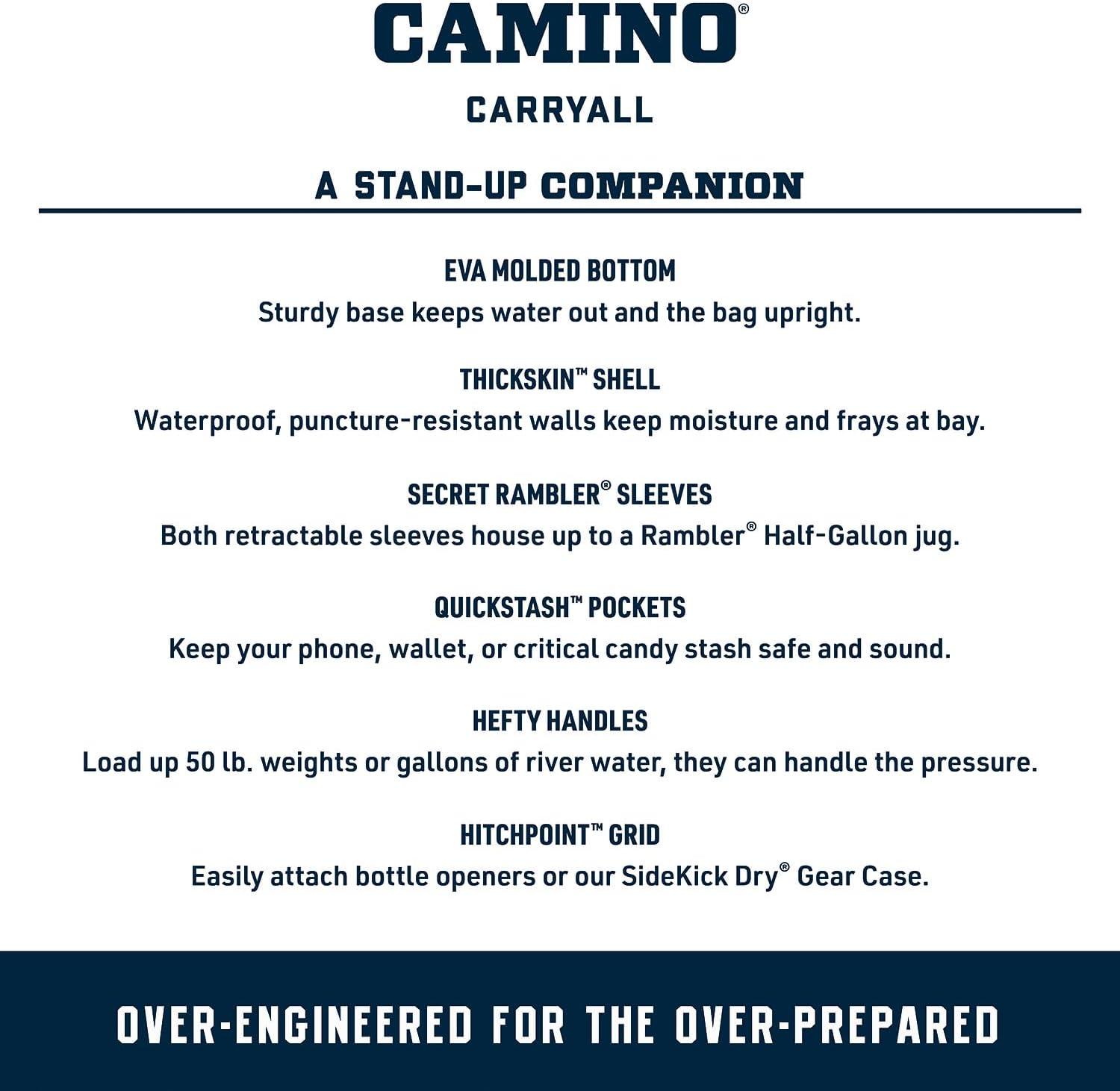 MULTIPLE WAYS TO CARRY: The Camino 20 Carryall is a heavy-haulin’, up-for-anything tote. Throw it over your shoulder or pick it up by the CrossBar Handles. Whichever way you choose this bag pulls its weight, so you can carry on with your day.