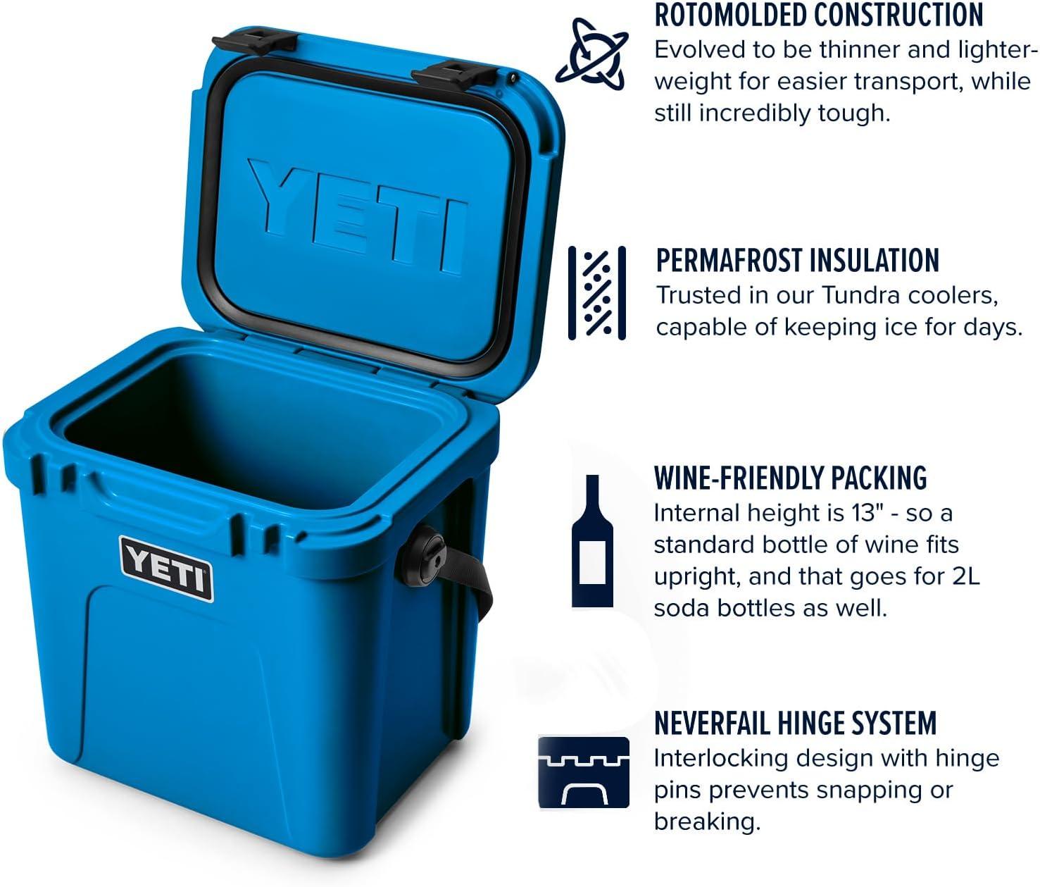 Made for the road and ready to go – The Roadie 24 Hard Cooler packs more while taking up less space. It’s built tall to accommodate critical bottles of wine and slim enough to squeeze behind the driver’s or passenger’s seat of a car. Now that’s what we call a road trip buddy.