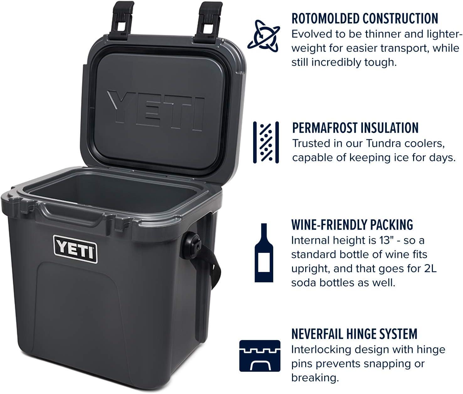 Made for the road and ready to go – The Roadie 24 Hard Cooler packs more while taking up less space. It’s built tall to accommodate critical bottles of wine and slim enough to squeeze behind the driver’s or passenger’s seat of a car. Now that’s what we call a road trip buddy.