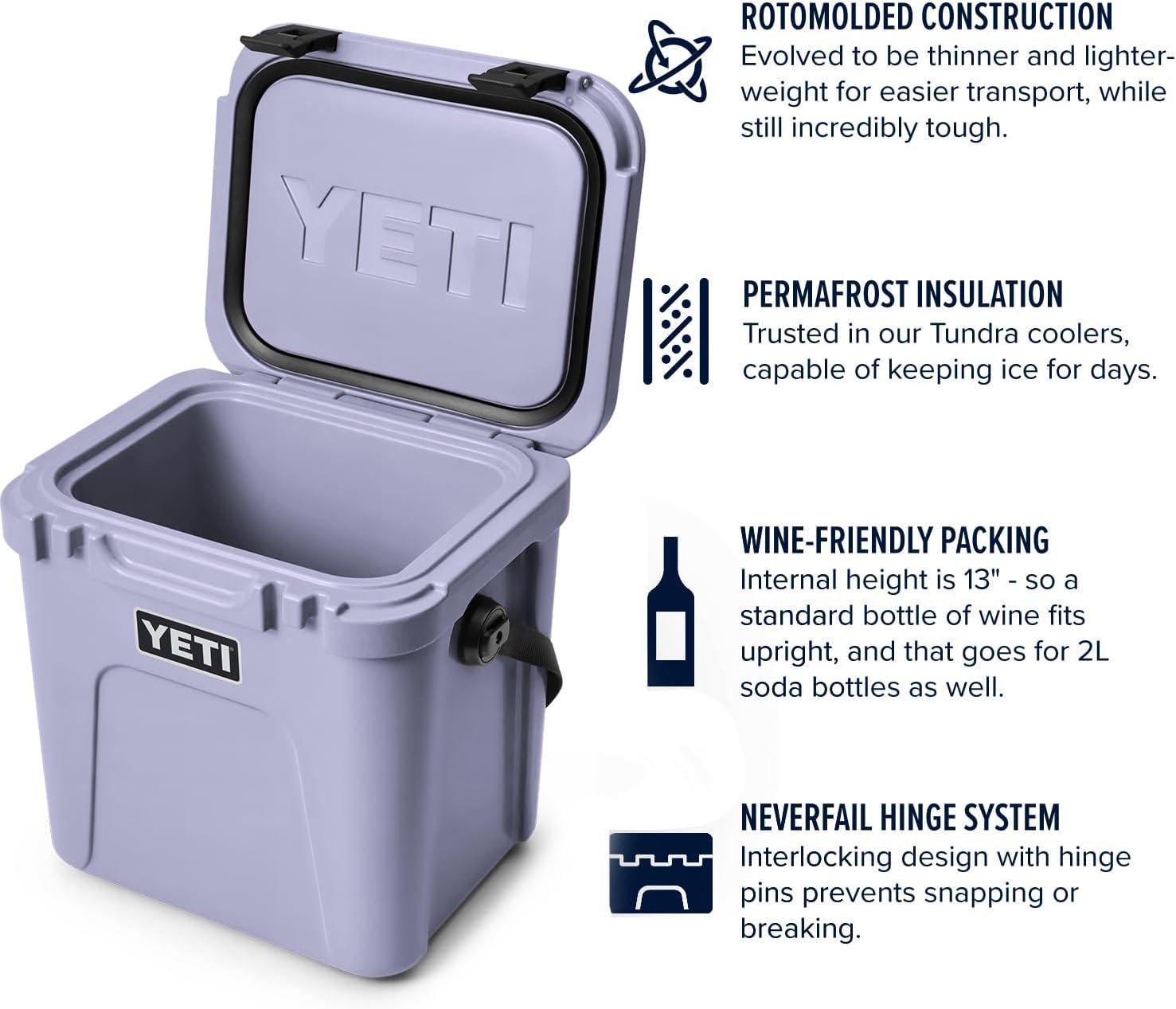 Made for the road and ready to go – The Roadie 24 Hard Cooler packs more while taking up less space. It’s built tall to accommodate critical bottles of wine and slim enough to squeeze behind the driver’s or passenger’s seat of a car. Now that’s what we call a road trip buddy.