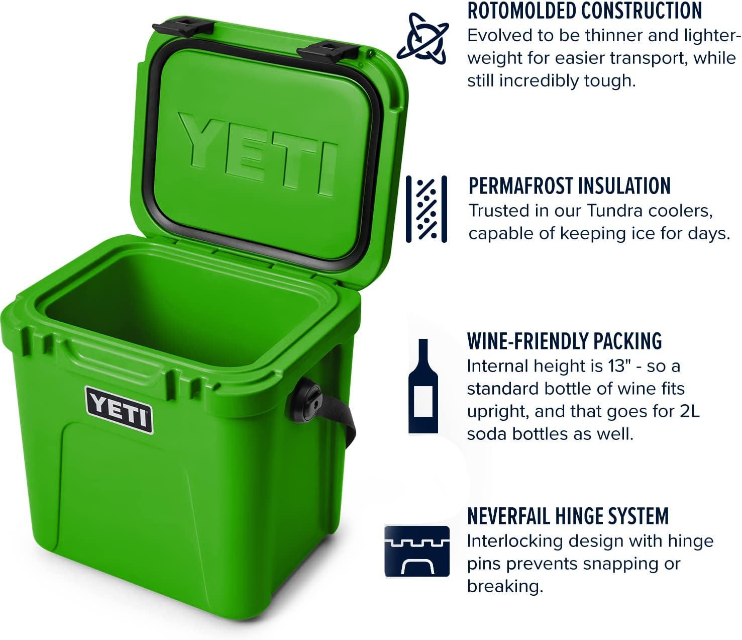 Made for the road and ready to go – The Roadie 24 Hard Cooler packs more while taking up less space. It’s built tall to accommodate critical bottles of wine and slim enough to squeeze behind the driver’s or passenger’s seat of a car. Now that’s what we call a road trip buddy.