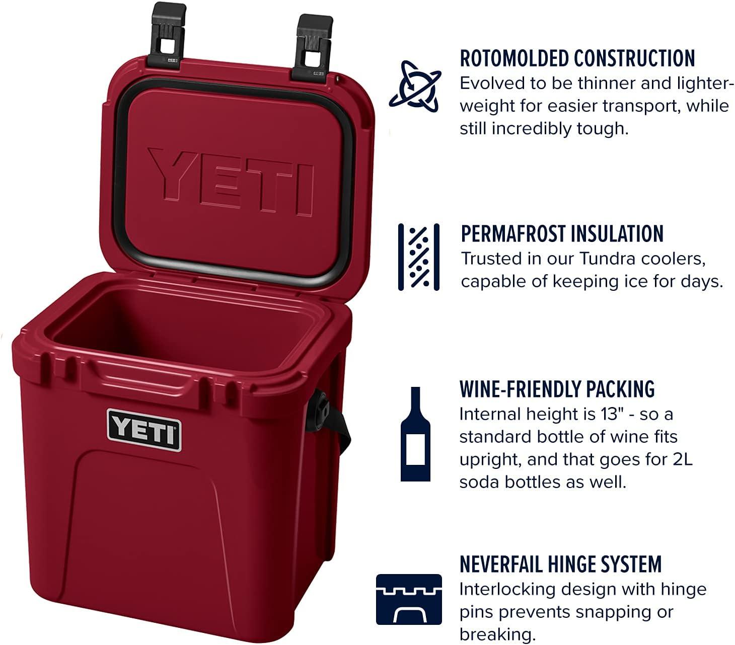 Made for the road and ready to go – The Roadie 24 Hard Cooler packs more while taking up less space. It’s built tall to accommodate critical bottles of wine and slim enough to squeeze behind the driver’s or passenger’s seat of a car. Now that’s what we call a road trip buddy.