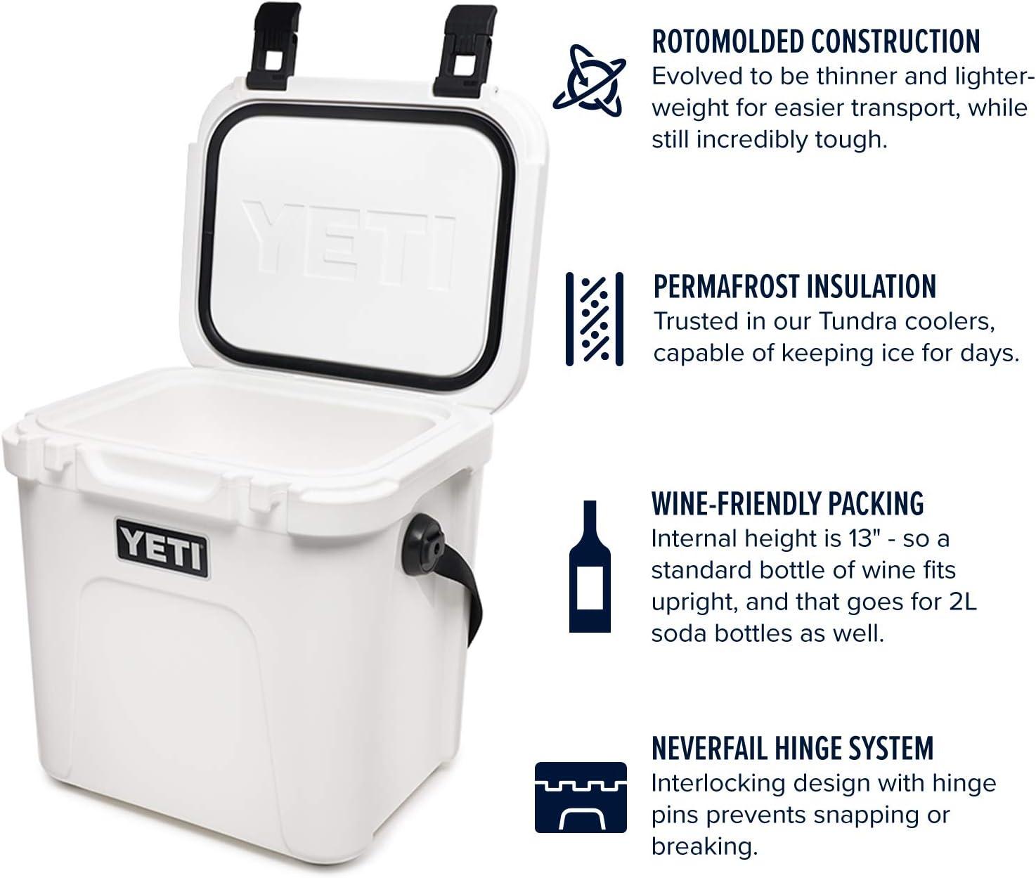 Made for the road and ready to go – The Roadie 24 Hard Cooler packs more while taking up less space. It’s built tall to accommodate critical bottles of wine and slim enough to squeeze behind the driver’s or passenger’s seat of a car. Now that’s what we call a road trip buddy.