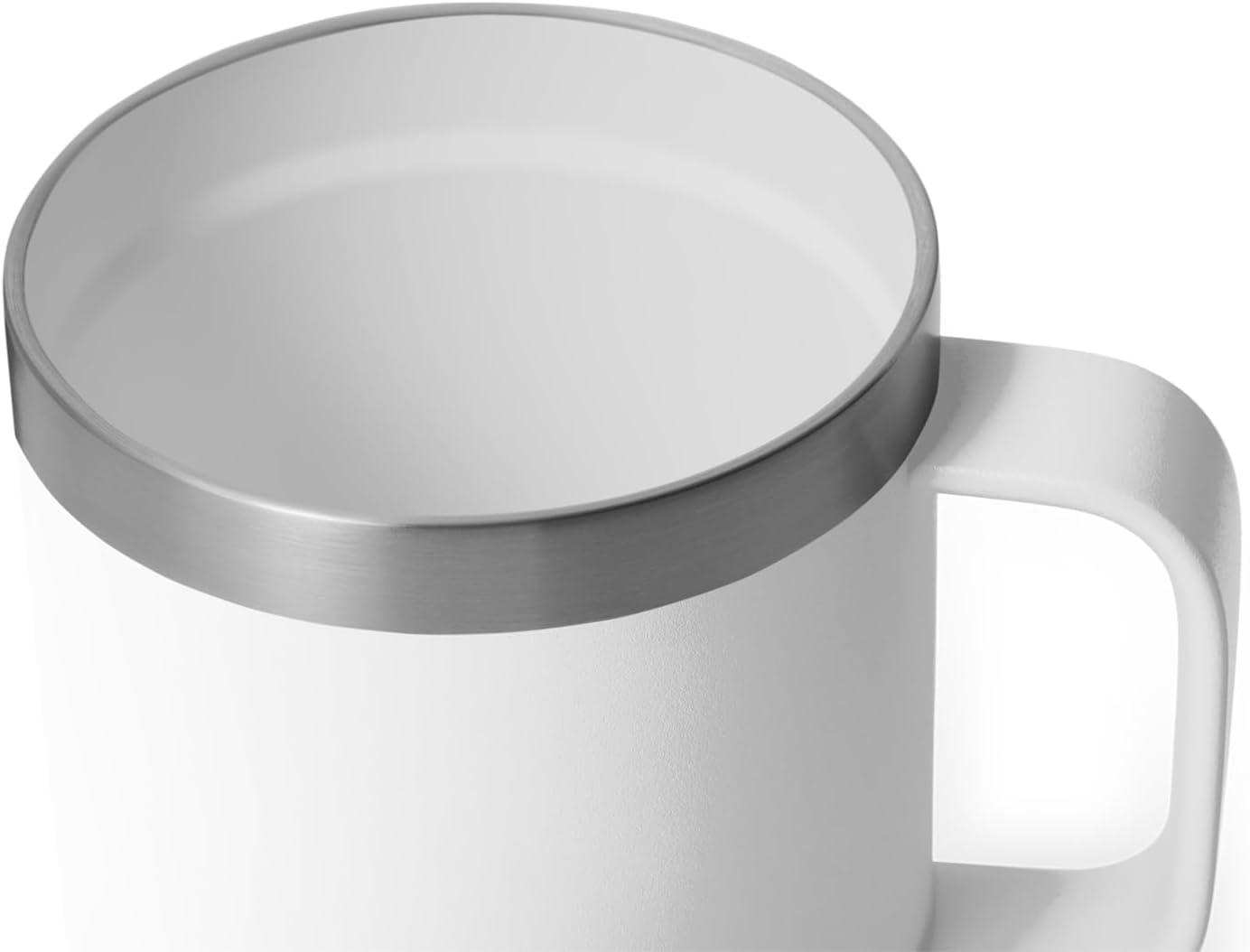 The YETI 10 oz. Rambler Mug stands 4 inches high and has a lip diameter of 3.5 inches, and with the handle its almost 5 inches’ wide