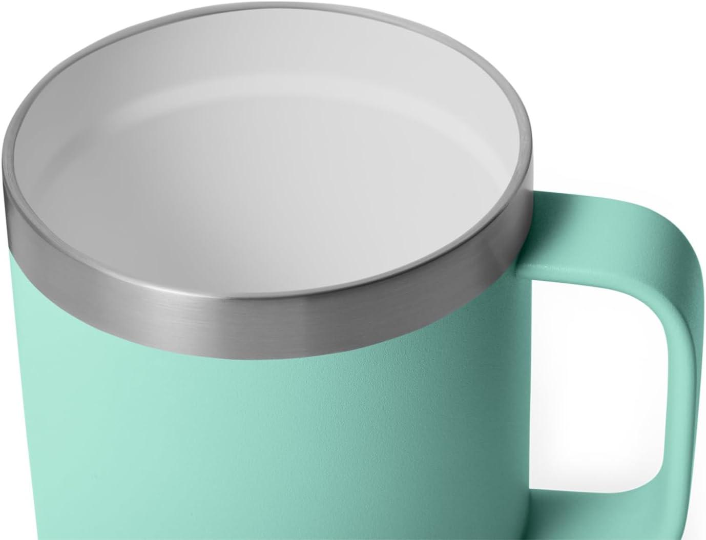 The YETI 10 oz. Rambler Mug stands 4 inches high and has a lip diameter of 3.5 inches, and with the handle its almost 5 inches’ wide