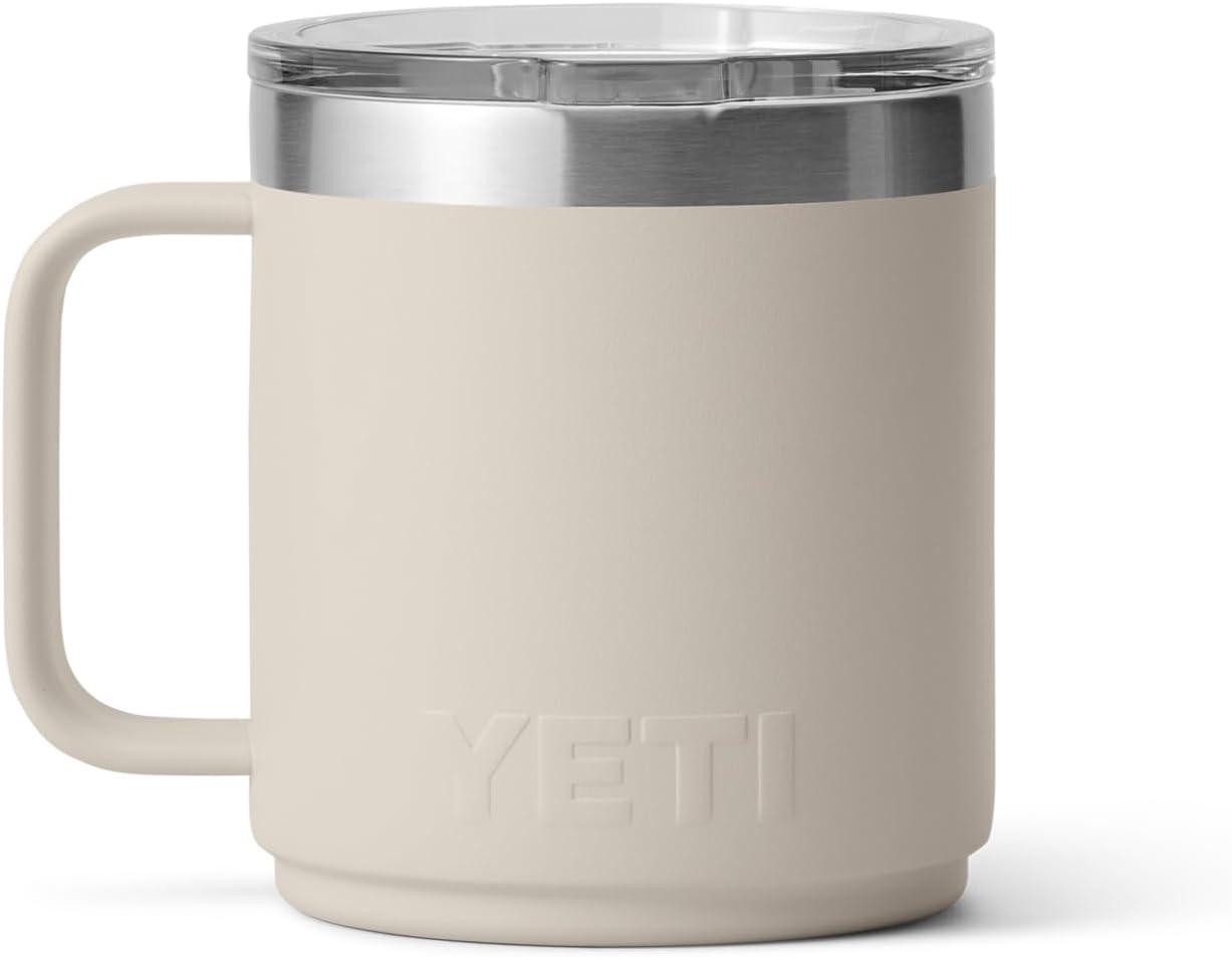 The YETI 10 oz. Rambler Mug stands 4 inches high and has a lip diameter of 3.5 inches, and with the handle its almost 5 inches’ wide