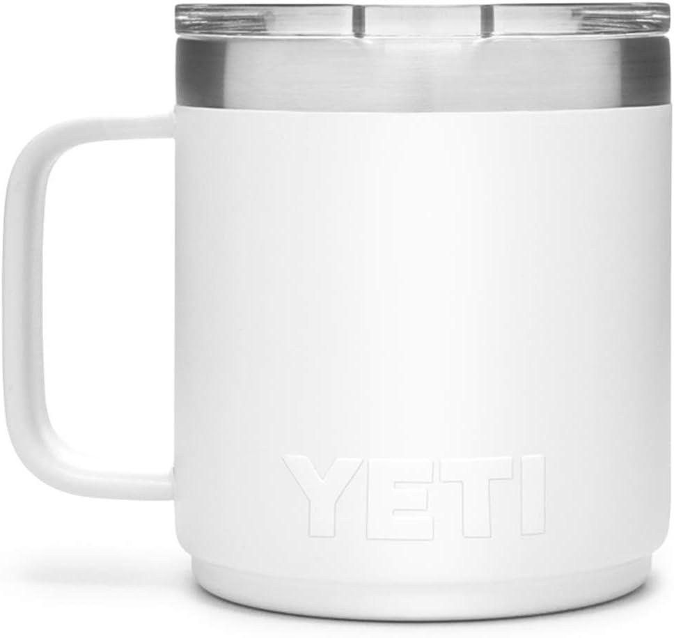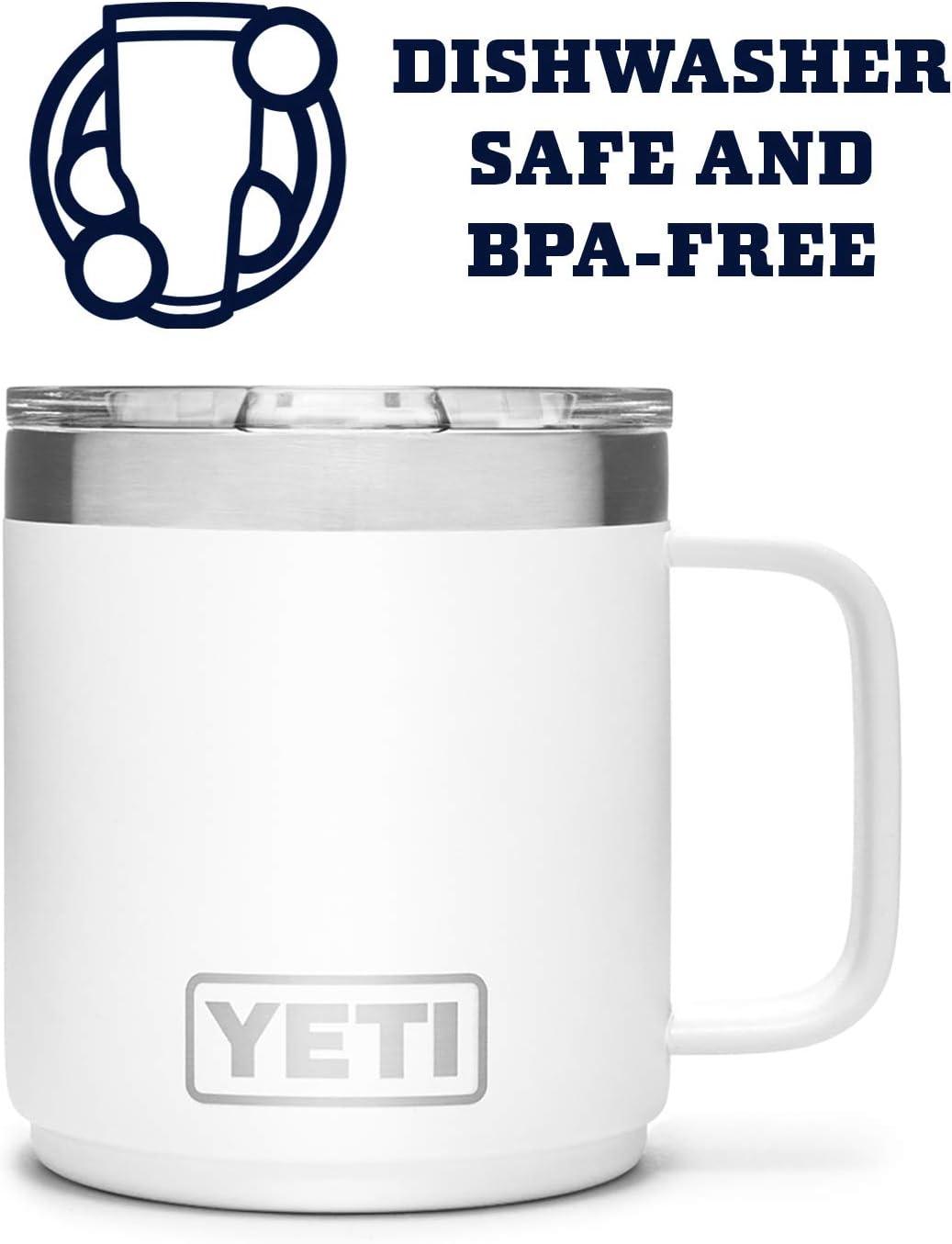 The YETI 10 oz. Rambler Mug stands 4 inches high and has a lip diameter of 3.5 inches, and with the handle its almost 5 inches’ wide