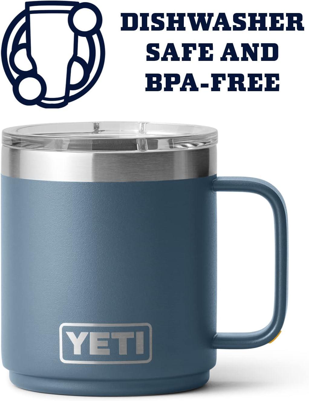 YETI Rambler 10 oz Stackable Mug, Vacuum Insulated, Stainless Steel with MagSlider Lid, White(Nordic Blue)