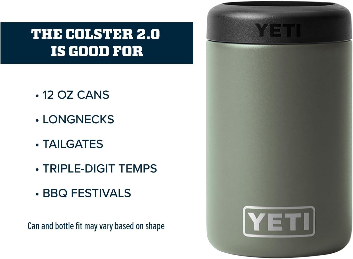 The YETI Standard Colster 2.0 is good for: Standard 12 oz. Cans, Longnecks, Tailgates, Triple-digit temps and BBQ festivals. Can and bottle fit may vary based on shape