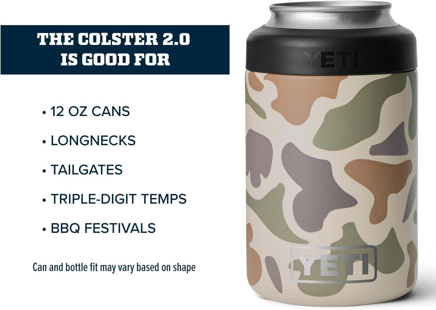 The YETI Standard Colster 2.0 is good for: Standard 12 oz. Cans, Longnecks, Tailgates, Triple-digit temps and BBQ festivals. Can and bottle fit may vary based on shape