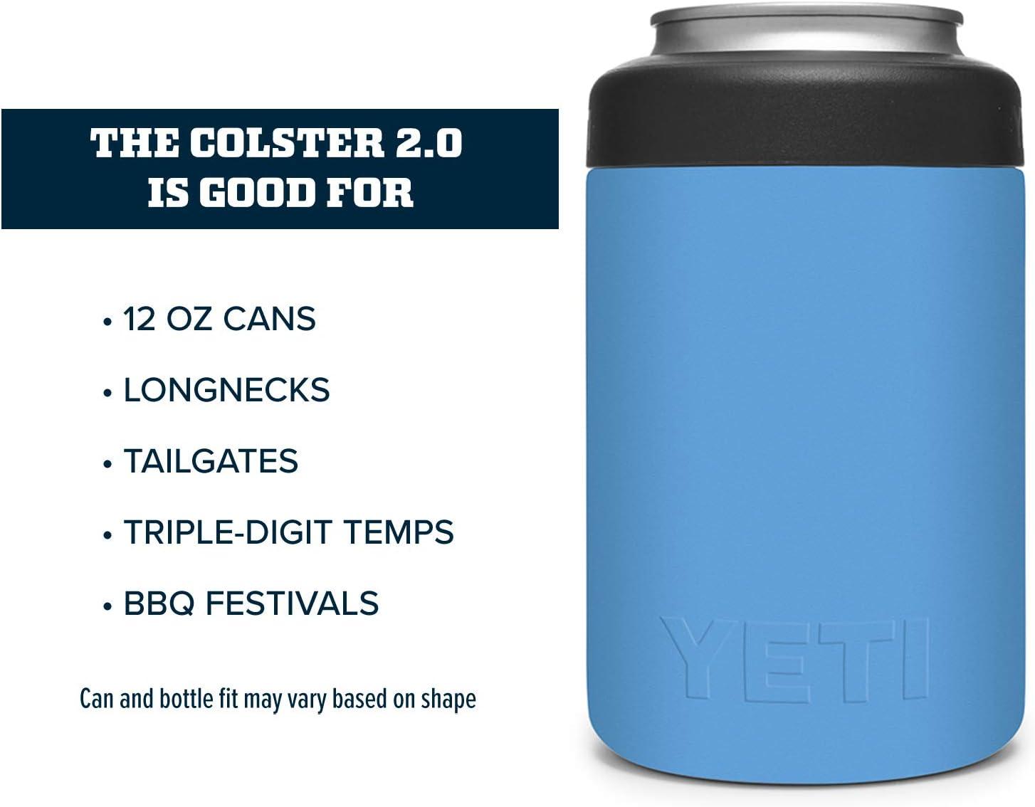 The YETI Standard Colster 2.0 is good for: Standard 12 oz. Cans, Longnecks, Tailgates, Triple-digit temps and BBQ festivals. Can and bottle fit may vary based on shape