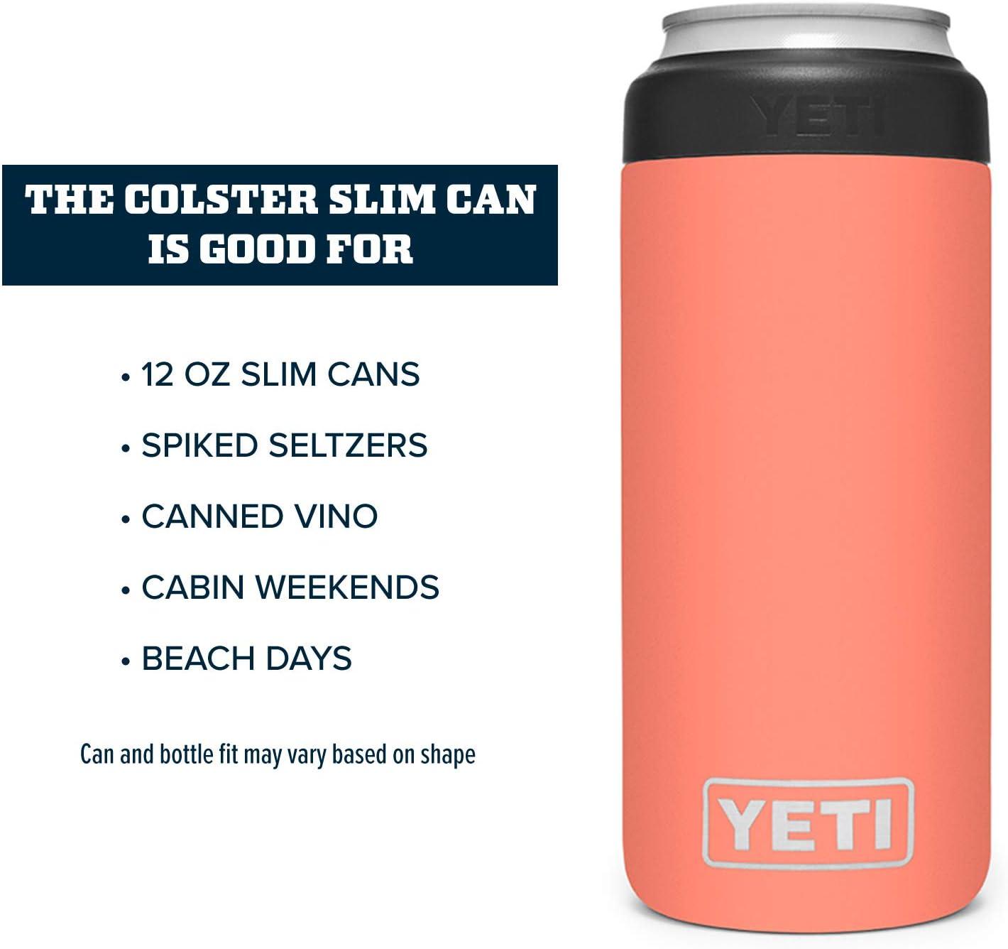 The YETI Slim Colster is good for: 12 oz Slim Cans, Spiked Seltzers, Canned Vino, Cabin Weekends and Beach Days. Can and bottle fit may vary based on shape