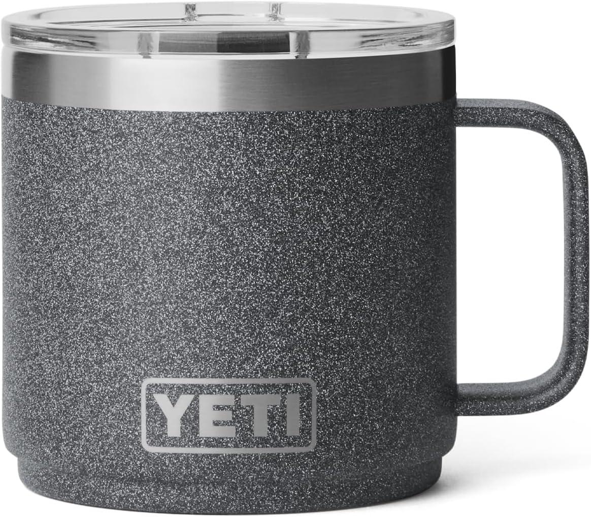 Be the first to review “YETI Rambler 14 oz Ceramic Lined Stackable Mug, Vacuum Insulated, Stainless Steel with MagSlider Lid, Moon Dust(Black Stone-Textured)”