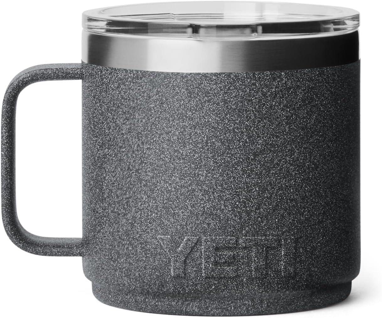 YETI Rambler 14 oz Ceramic Lined Stackable Mug, Vacuum Insulated, Stainless Steel with MagSlider Lid, Moon Dust(Black Stone-Textured)