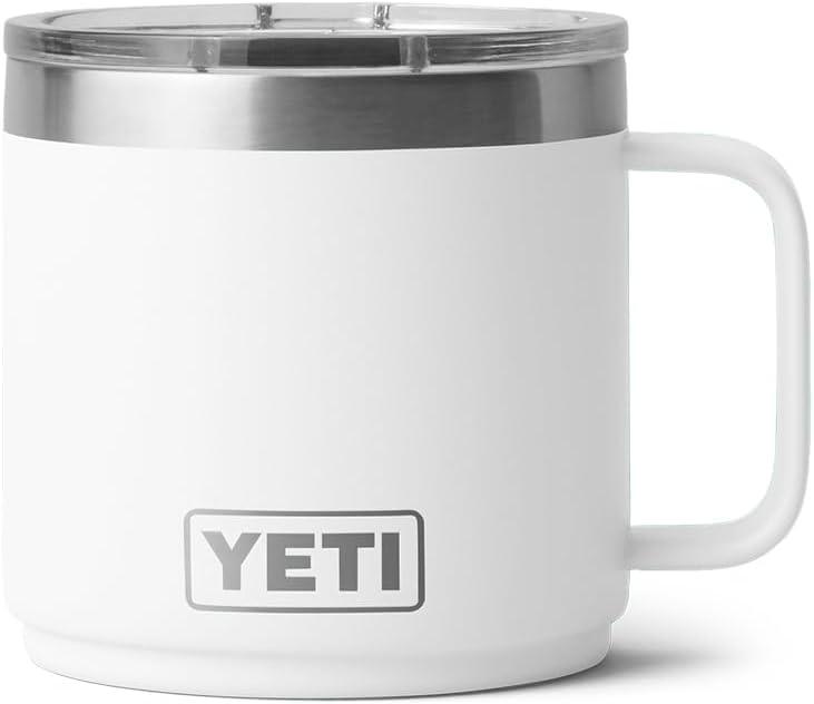 YETI Rambler 14 oz Ceramic Lined Stackable Mug, Vacuum Insulated, Stainless Steel with MagSlider Lid, Ridgeline(White)