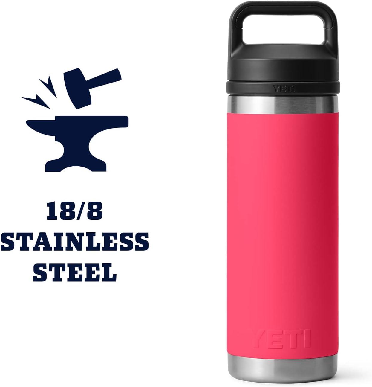 YETI Rambler 18 oz Bottle, Vacuum Insulated, Stainless Steel with Chug Cap, White(Bimini Pink)