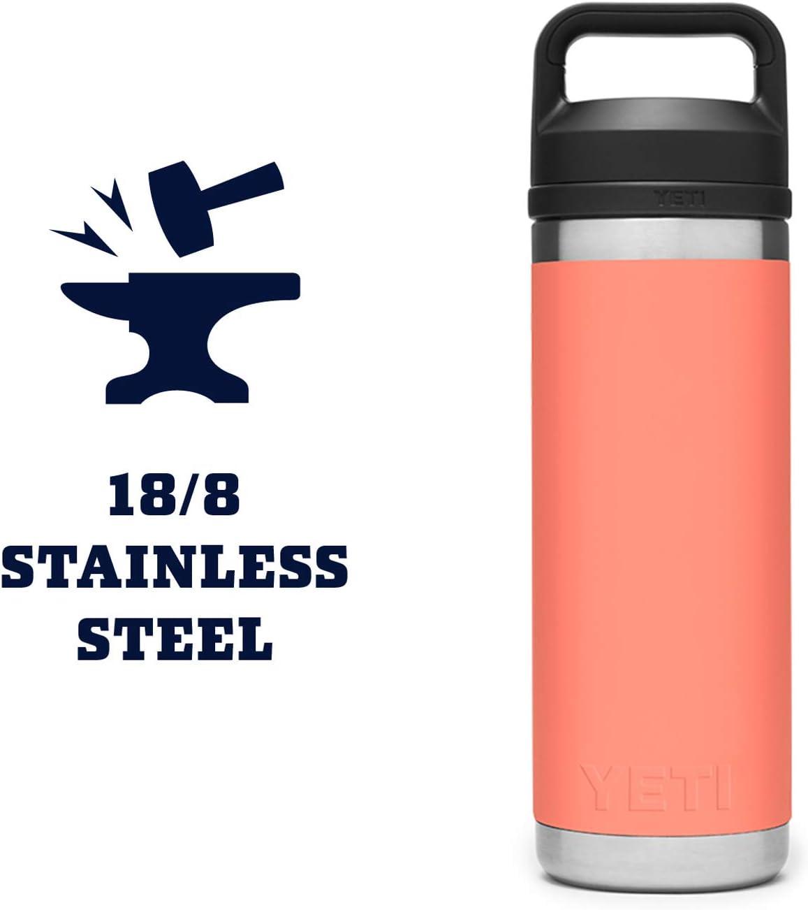 YETI Rambler 18 oz Bottle, Vacuum Insulated, Stainless Steel with Chug Cap, White(Coral)