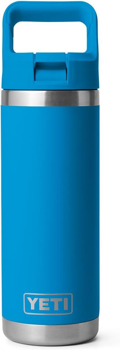 imageYETI Rambler 18 oz Bottle Vacuum Insulated Stainless Steel with Color Matching Straw Cap Firefly YellowBig Wave Blue