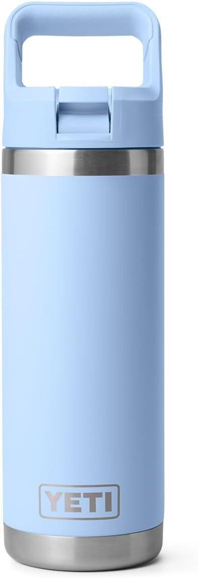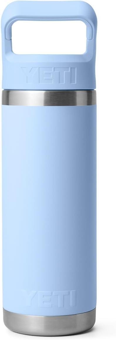 YETI Rambler 18 oz Bottle, Vacuum Insulated, Stainless Steel with Color Matching Straw Cap, Solar Flare(Big Sky Blue)
