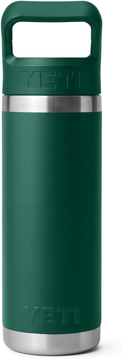 YETI Rambler 18 oz Bottle, Vacuum Insulated, Stainless Steel with Color Matching Straw Cap, Solar Flare(Black Forest Green)