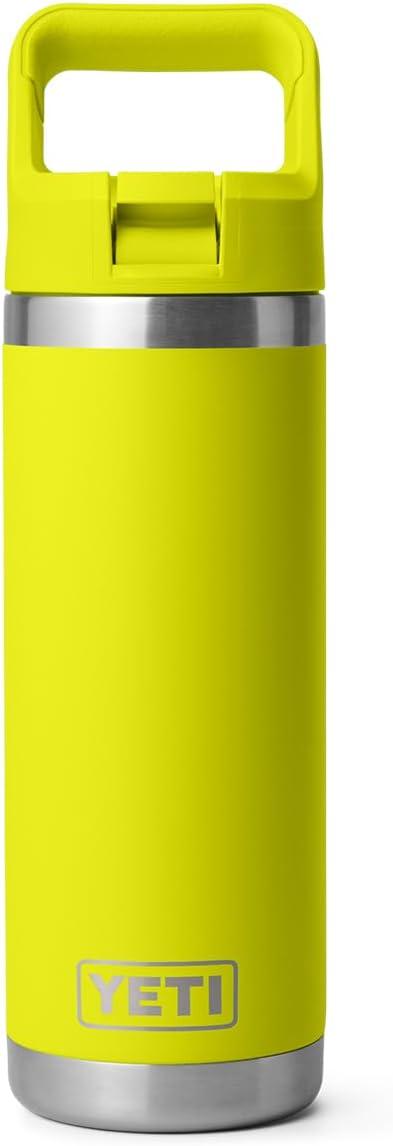 YETI Rambler 18 oz Bottle, Vacuum Insulated, Stainless Steel with Color Matching Straw Cap, Solar Flare(Firefly Yellow)