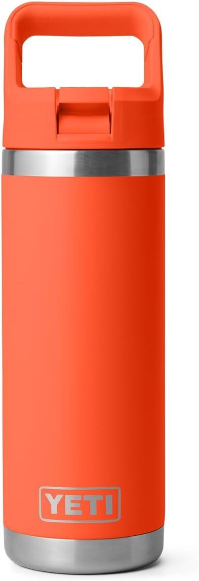 YETI Rambler 18 oz Bottle, Vacuum Insulated, Stainless Steel with Color Matching Straw Cap, Solar Flare(Papaya)