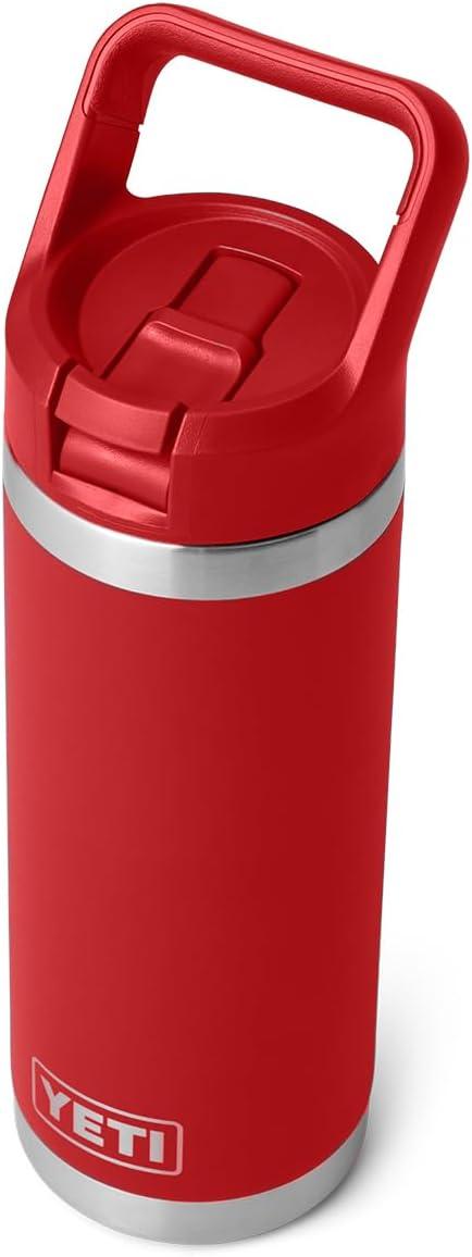YETI Rambler 18 oz Bottle, Vacuum Insulated, Stainless Steel with Color Matching Straw Cap, Solar Flare(Rescue Red)