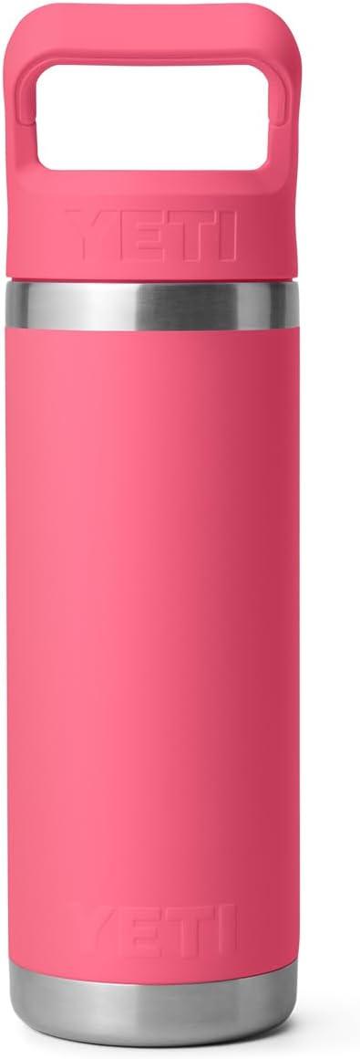 YETI Rambler 18 oz Bottle, Vacuum Insulated, Stainless Steel with Color Matching Straw Cap, Solar Flare(Tropical Pink)