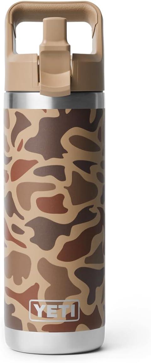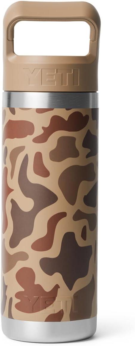 YETI Rambler 18 oz Bottle, Vacuum Insulated, Stainless Steel with Color Matching Straw Cap, Solar Flare(Wetlands Camo)