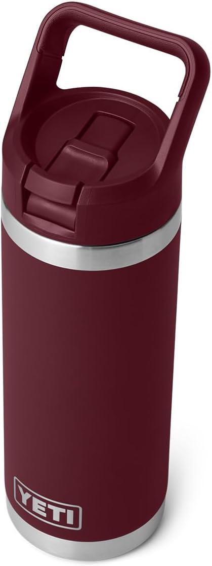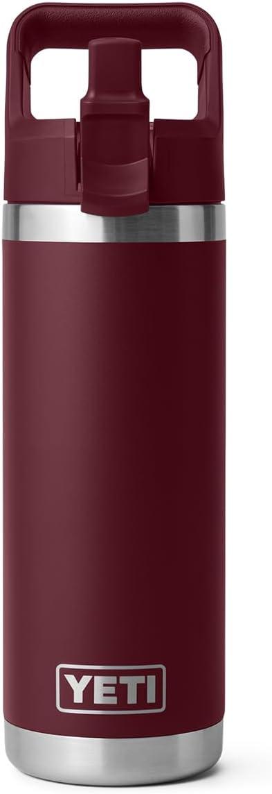 YETI Rambler 18 oz Bottle, Vacuum Insulated, Stainless Steel with Color Matching Straw Cap, Solar Flare(Wild Vine Red)