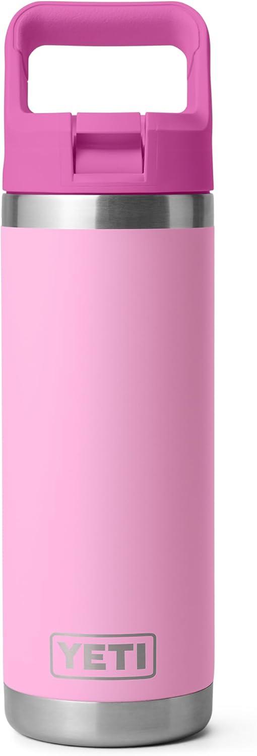 YETI Rambler 18 oz Bottle, Vacuum Insulated, Stainless Steel with Color Matching Straw Cap, White(Power Pink)