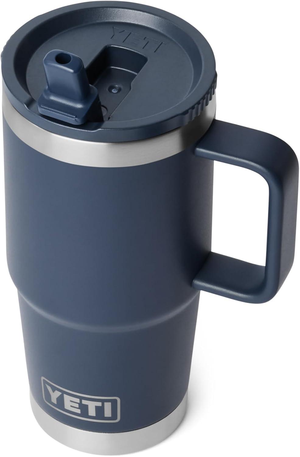 YETI Rambler 20 oz Travel Mug with Flip Straw Lid – Stainless Steel, Vacuum Insulated, Leakproof, Cup Holder Friendly(Navy)
