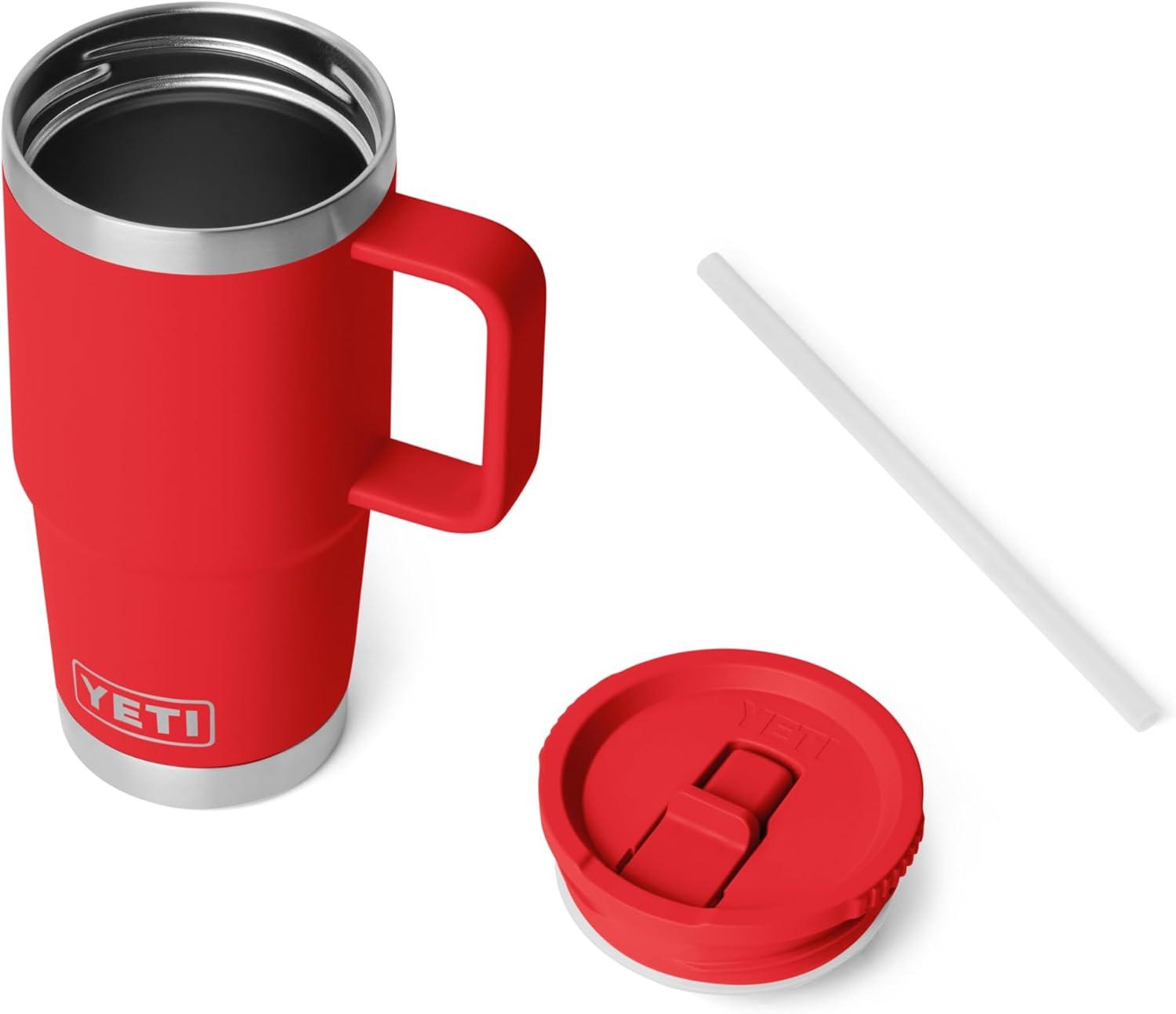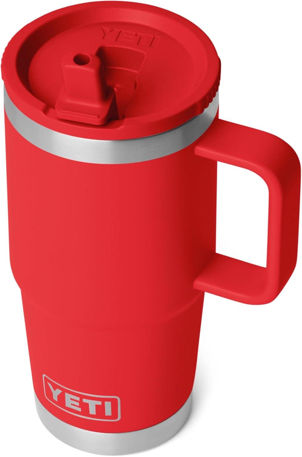 YETI Rambler 20 oz Travel Mug with Flip Straw Lid – Stainless Steel, Vacuum Insulated, Leakproof, Cup Holder Friendly(Rescue Red)