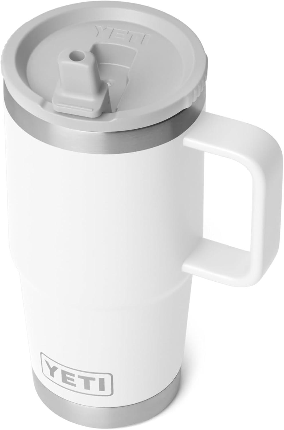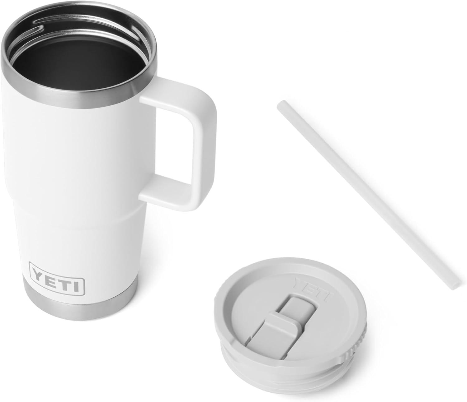 YETI Rambler 20 oz Travel Mug with Flip Straw Lid – Stainless Steel, Vacuum Insulated, Leakproof, Cup Holder Friendly(White)