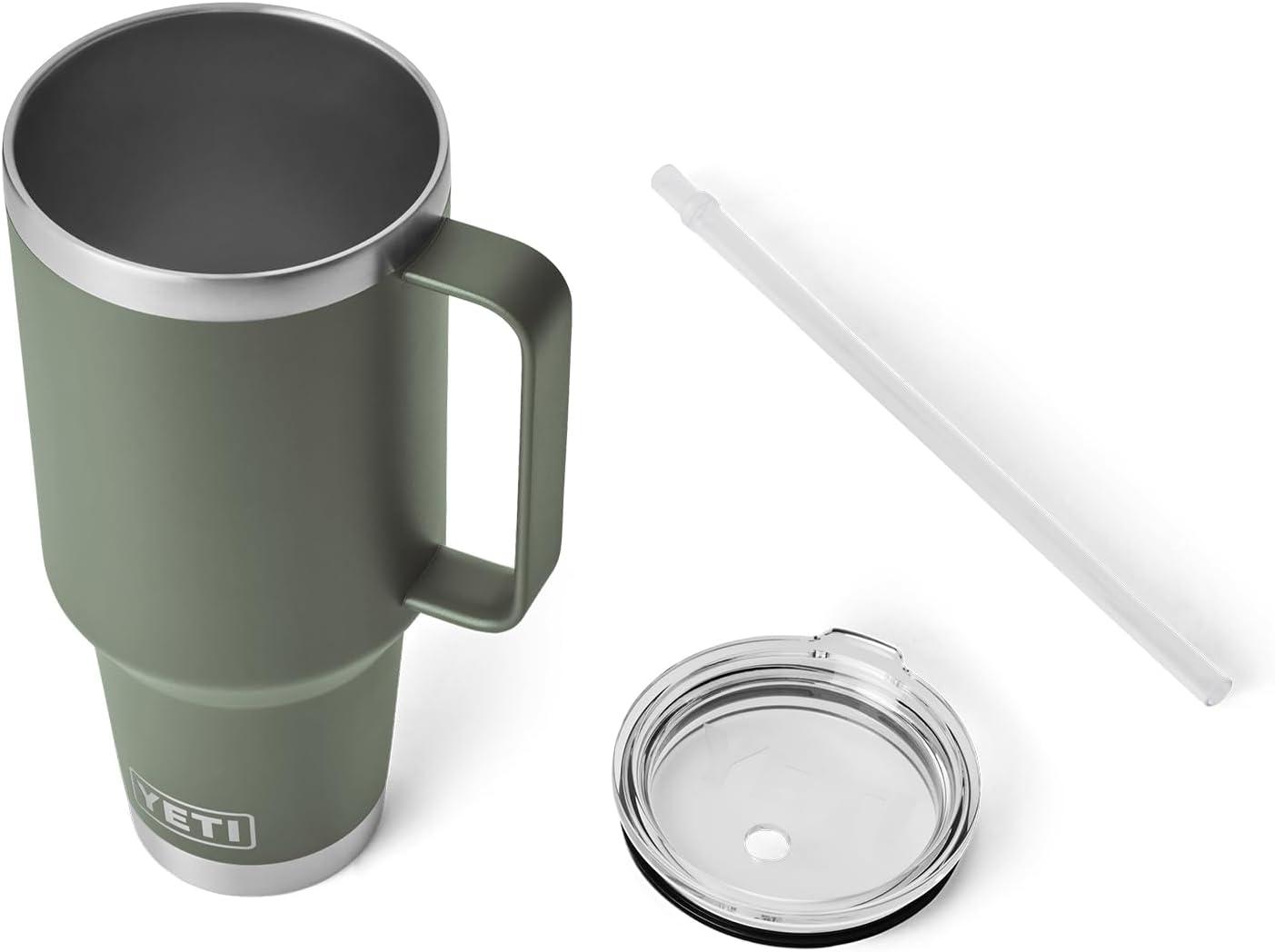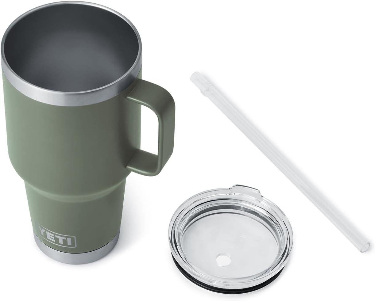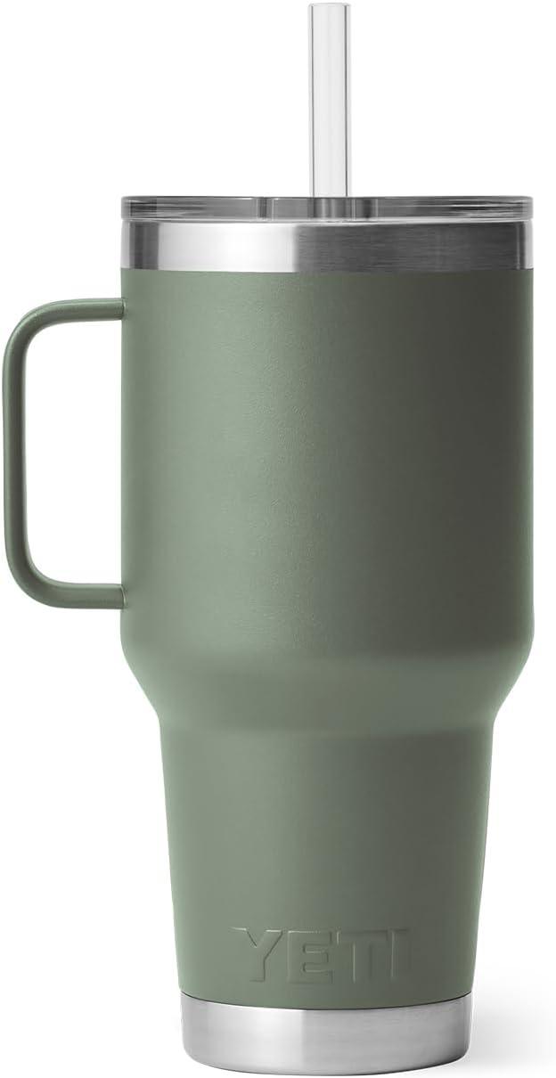 imageYETI Rambler 25 oz Tumbler with Handle and Straw Lid Travel Mug Water Tumbler Vacuum Insulated Cup with Handle Stainless Steel Rescue RedCamp Green