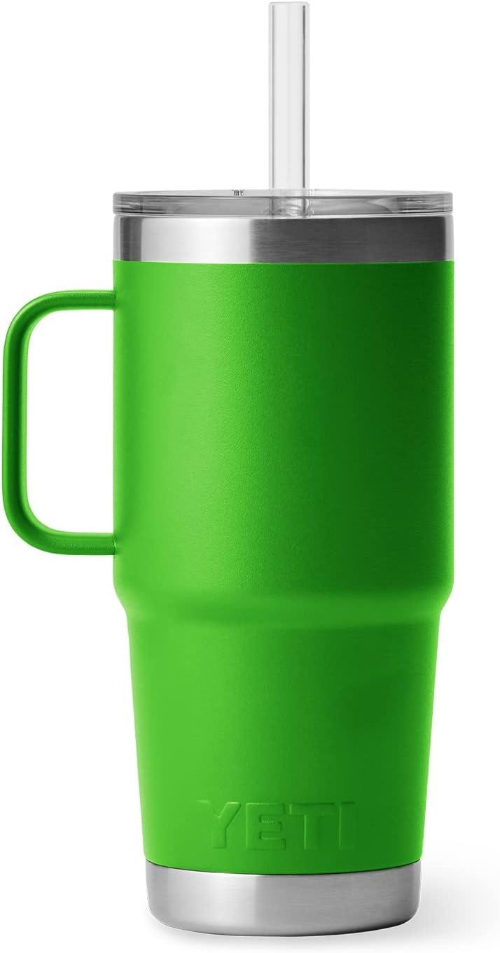 YETI Rambler 25 oz Tumbler with Handle and Straw Lid, Travel Mug Water Tumbler, Vacuum Insulated Cup with Handle, Stainless Steel, Rescue Red(Canopy Green)