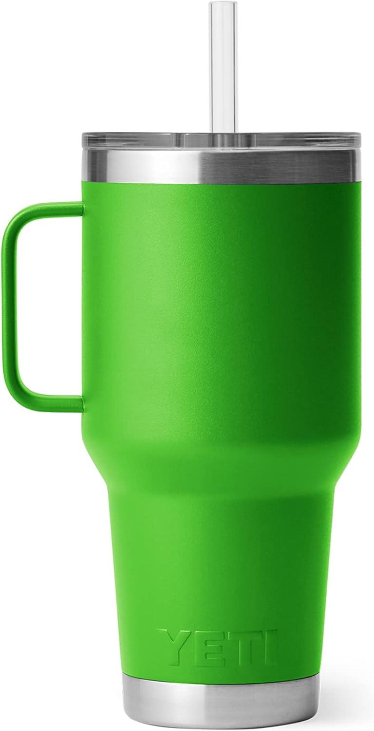 imageYETI Rambler 25 oz Tumbler with Handle and Straw Lid Travel Mug Water Tumbler Vacuum Insulated Cup with Handle Stainless Steel Rescue RedCamp Green