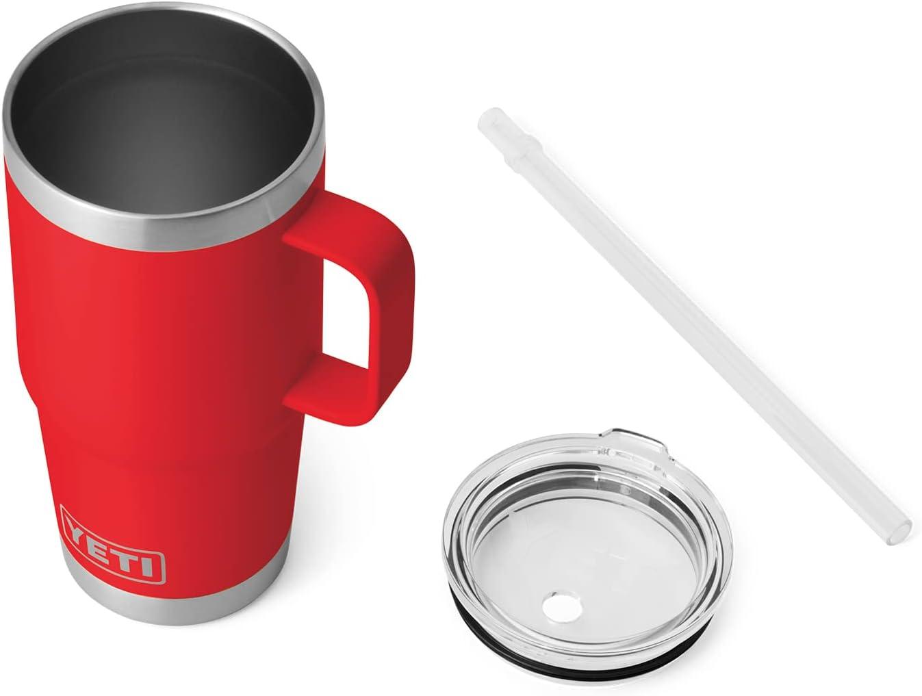 YETI Rambler 25 oz Tumbler with Handle and Straw Lid, Travel Mug Water Tumbler, Vacuum Insulated Cup with Handle, Stainless Steel, Rescue Red(Rescue Red)