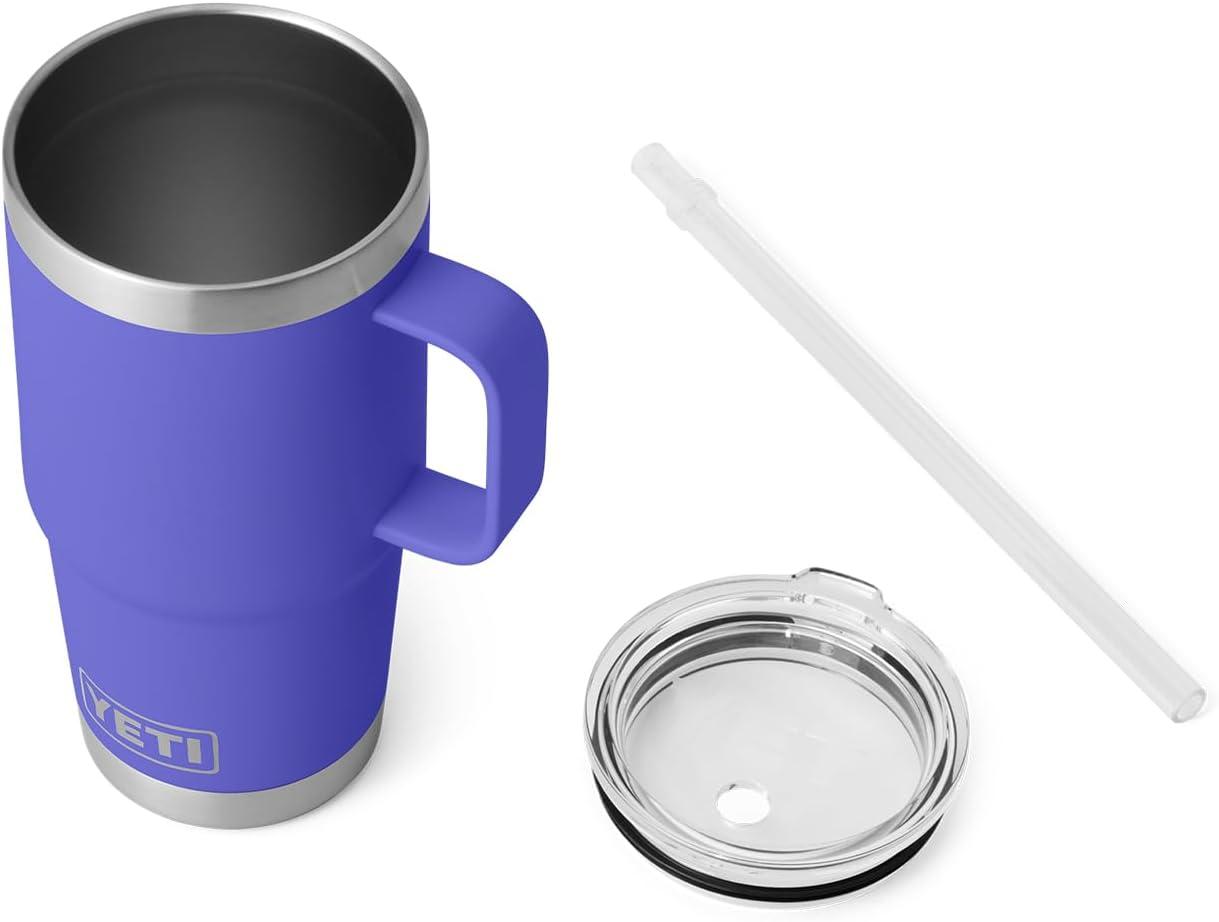 YETI Rambler 25 oz Tumbler with Handle and Straw Lid, Travel Mug Water Tumbler, Vacuum Insulated Cup with Handle, Stainless Steel, Rescue Red(Ultramarine Violet)