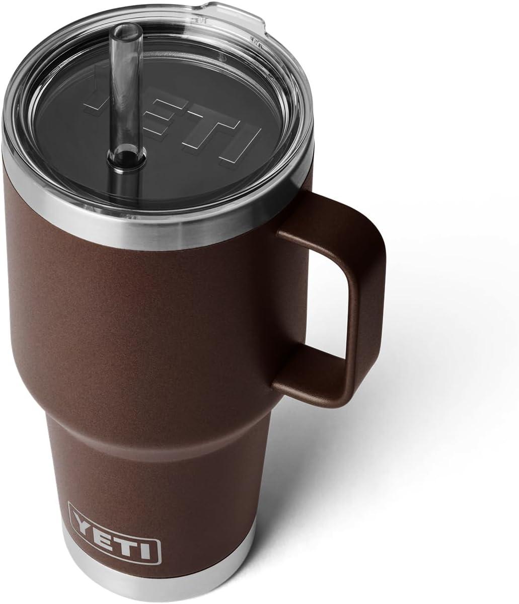 imageYETI Rambler 25 oz Tumbler with Handle and Straw Lid Travel Mug Water Tumbler Vacuum Insulated Cup with Handle Stainless Steel Rescue RedWetlands Brown