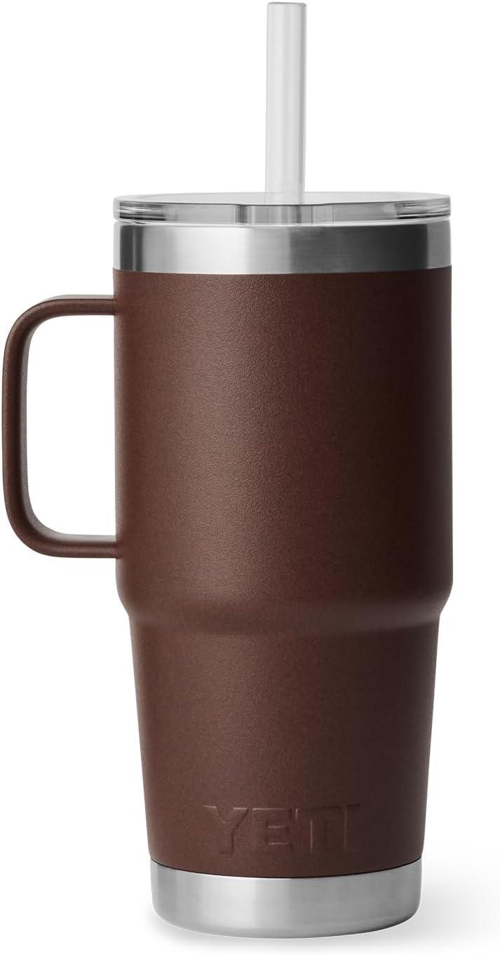 YETI Rambler 25 oz Tumbler with Handle and Straw Lid, Travel Mug Water Tumbler, Vacuum Insulated Cup with Handle, Stainless Steel, Rescue Red(Wetlands Brown)