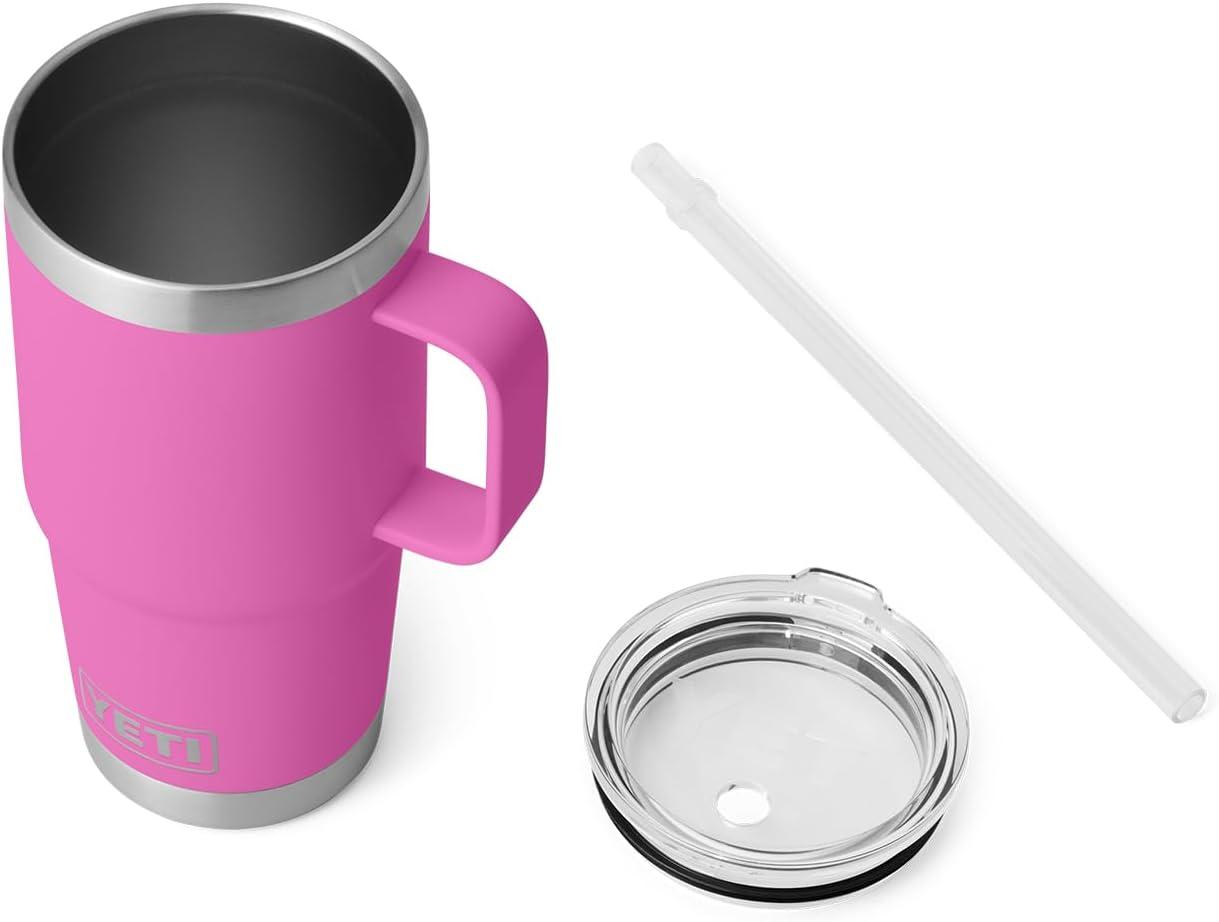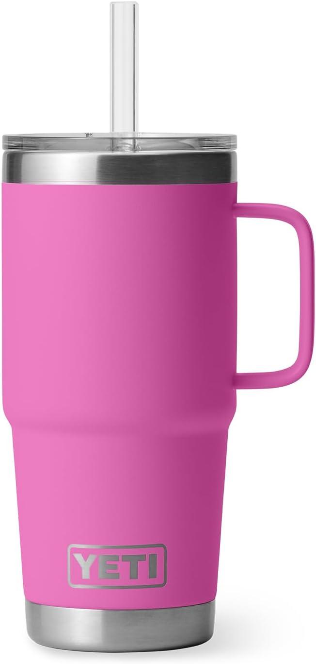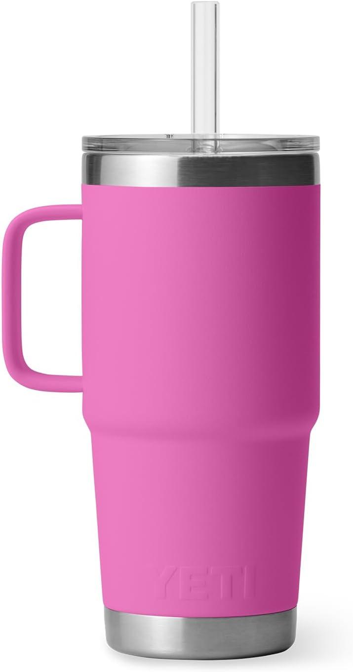 YETI Rambler 25 oz Tumbler with Handle and Straw Lid, Travel Mug Water Tumbler, Vacuum Insulated Cup with Handle, Stainless Steel, Rescue Red(Wildflower Fuchsia)