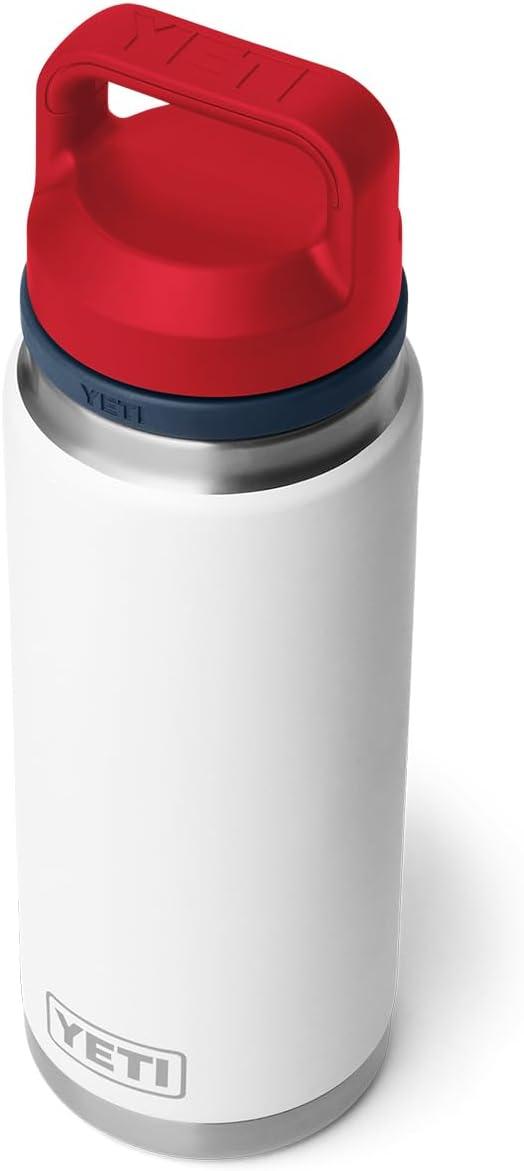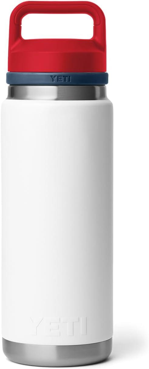 YETI Rambler 26 oz Bottle, Vacuum Insulated, Leakproof, Stainless Steel with Chug Cap(White/Navy/Rescue Red)