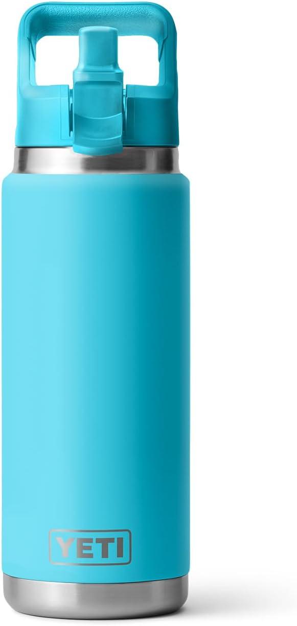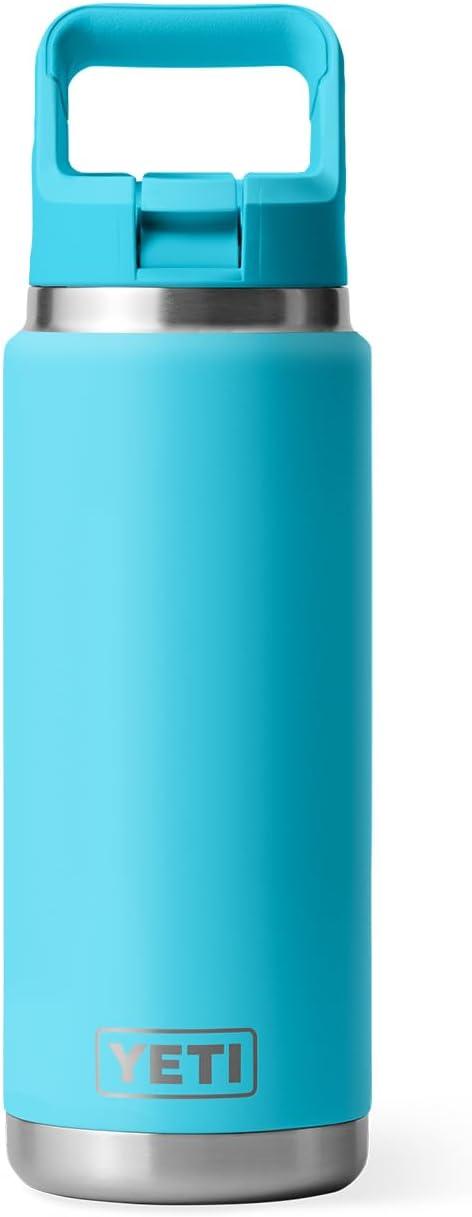 YETI Rambler 26 oz Bottle, Vacuum Insulated, Stainless Steel with Color Matching Straw Cap(Reef Blue)