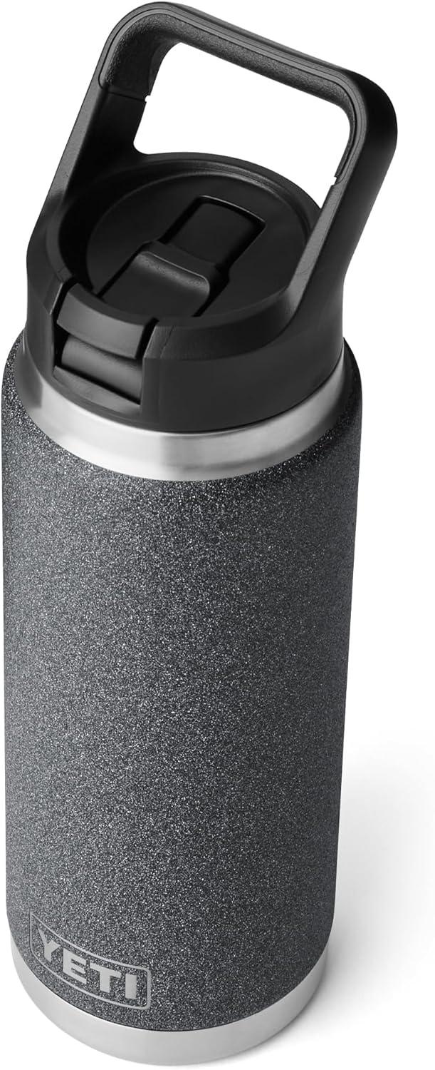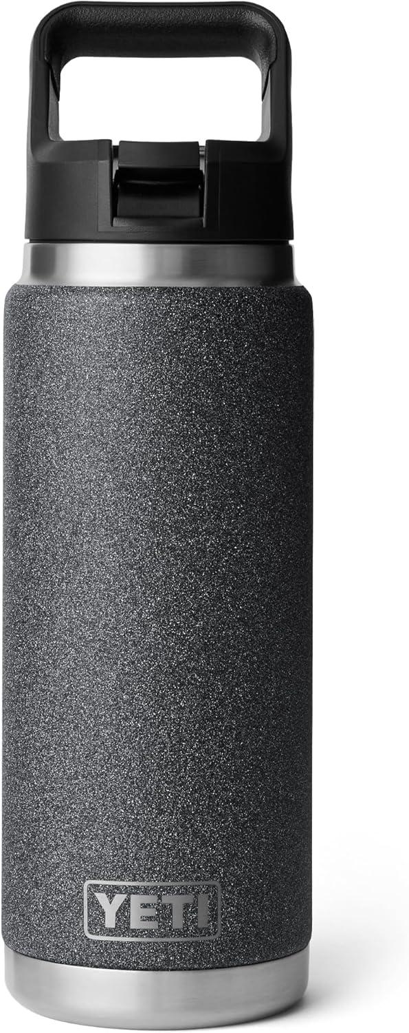 YETI Rambler 26 oz Bottle, Vacuum Insulated, Stainless Steel with Straw Cap, Black Stone(Black Stone-Textured)