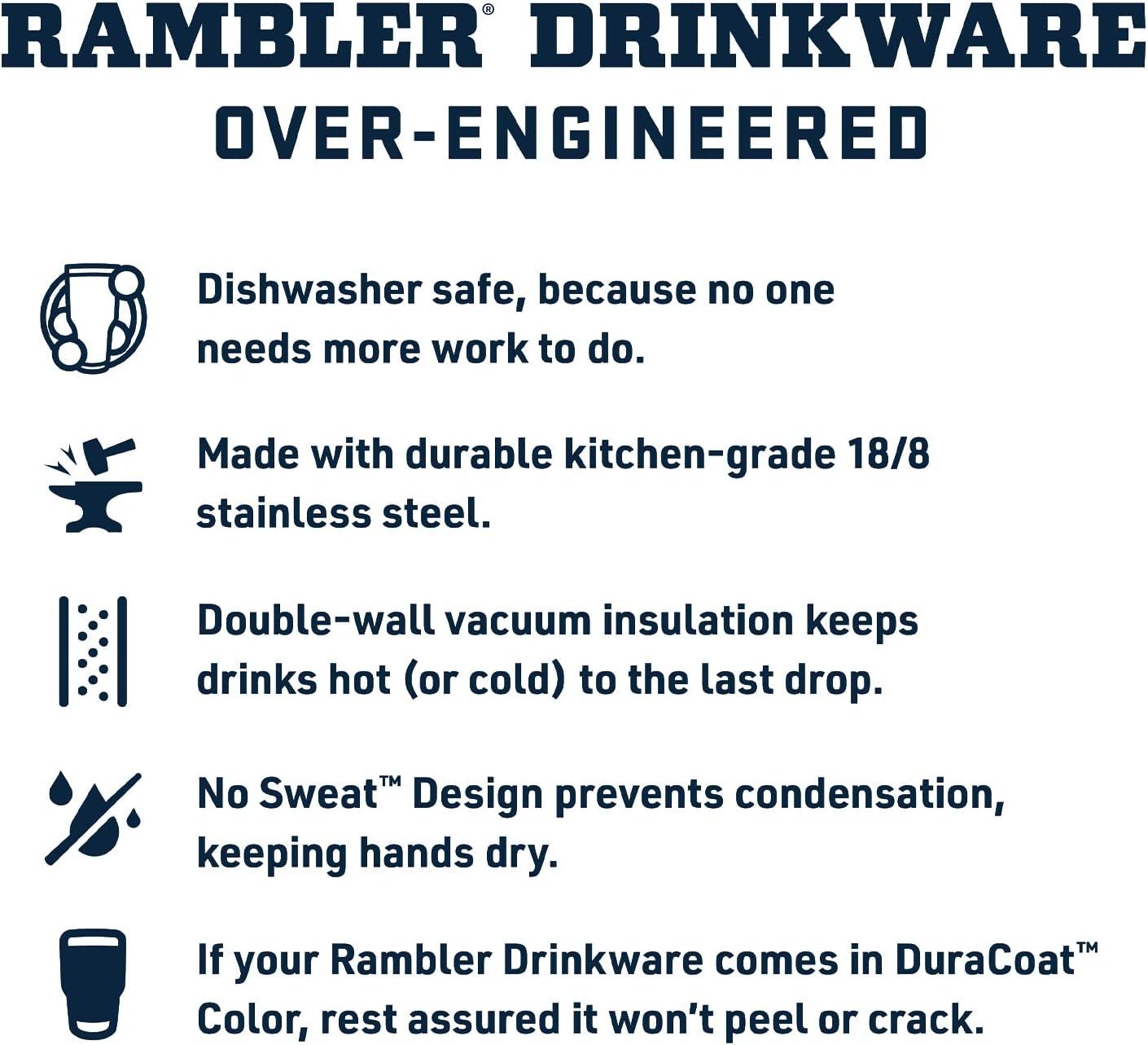 The Rambler 26 oz. Cup is made from durable stainless steel with double-wall vacuum insulation to protect your hot or cold beverage at all costs