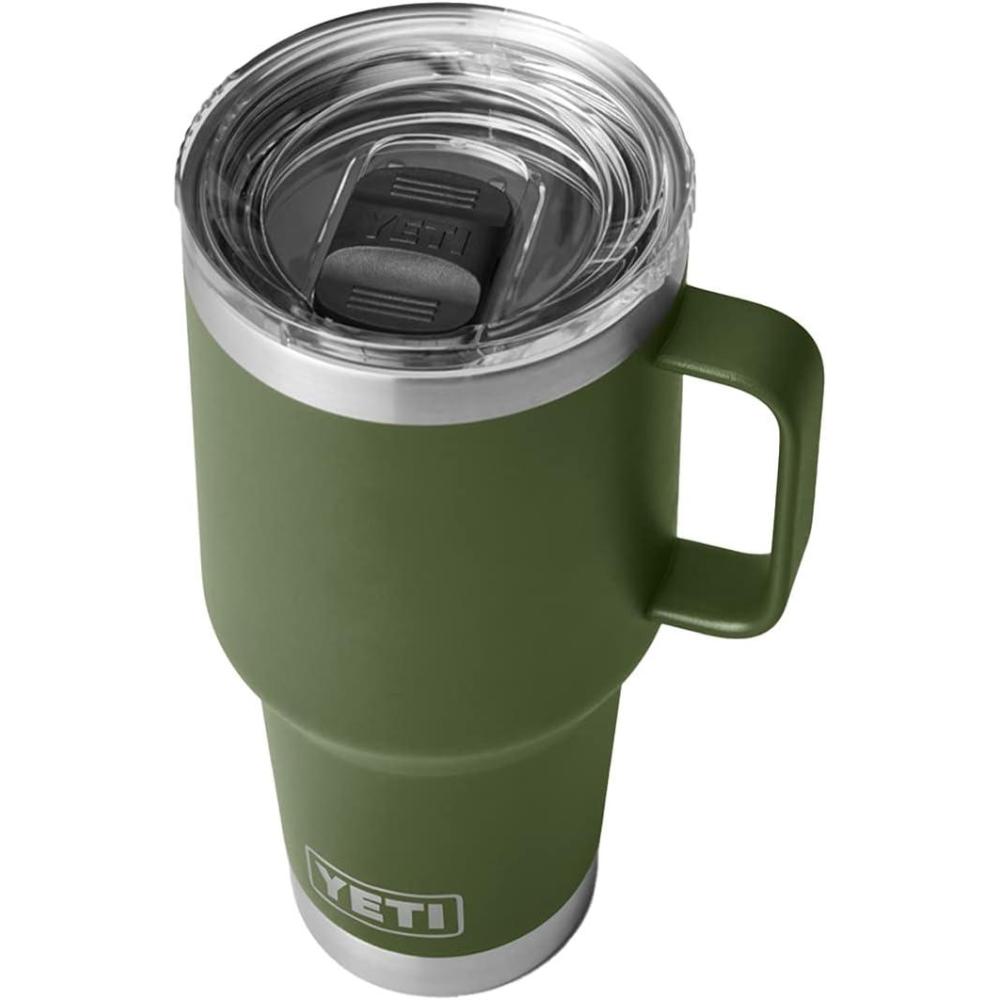 Please Note: The Travel Mug can only use the Stronghold Lid and the Stronghold Lid won’t fit other Rambler Drinkware models. The Travel Mug Stronghold Lid has 4 placement options and plays nice with both righties and lefties.
