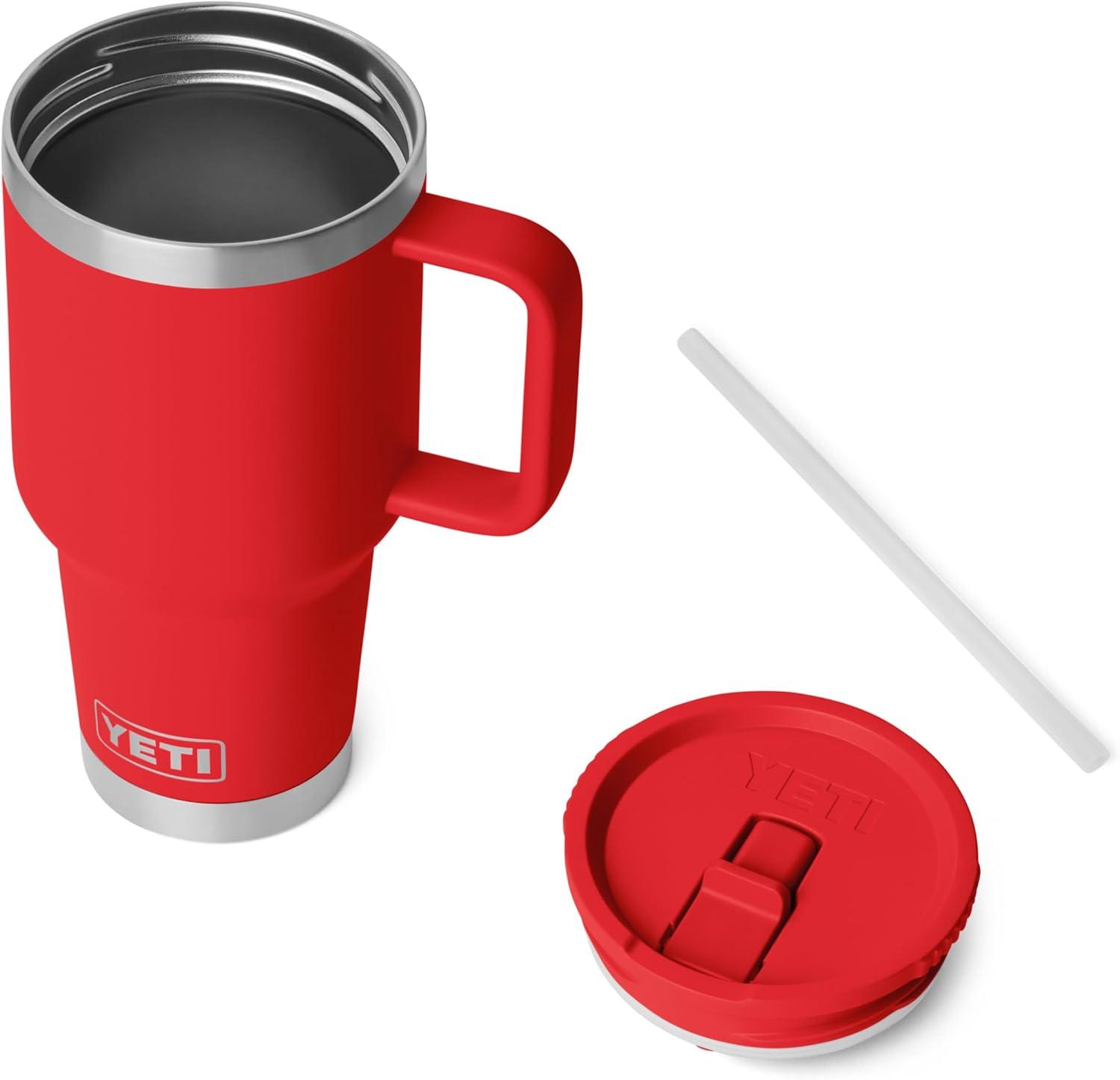 YETI Rambler 30 oz Travel Mug with Flip Straw Lid – Stainless Steel, Vacuum Insulated, Leakproof, Cup Holder Friendly(Rescue Red)
